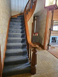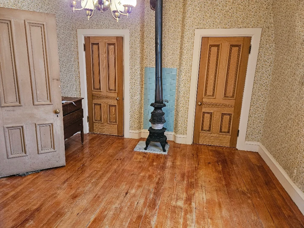Inside, the house boasts expansive rooms with high ceilings, woodwork detailing, and fireplaces that tell stories of cozy gatherings during the cold Kansas winters. The hardwood floors and handcrafted details reflect the craftsmanship of the time and the pride that Perry Hutchinson took in building a lasting family home.
